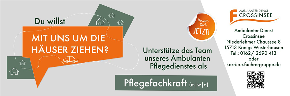 Im Südosten von Berlin, zugehörig der Stadt Königs Wusterhausen, befindet sich unser Seniorenpflegeheim Crossinsee.
